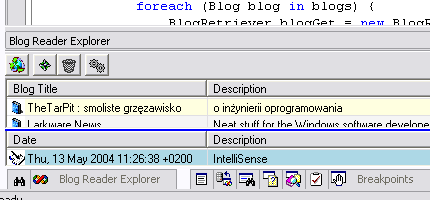 Blog Reader Add-In for Visual Studio .NET — czytnik RSS zintegrowany z Visual Studio, czyli co zrobić, żeby lepiej udawać, że pracujesz ;-).