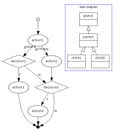 Spłycając sprawę (bez większych wyrzutów sumienia) i ignorując podstawy teoretyczne wizualizacji grafów, można potraktować Graphviz po prostu jako sposób na automatyczne generowanie obrazków na podstawie kodu źródłowego. Zwłaszcza, że The DOT Language nie należy do szczególnie skomplikowanych, a sam kod (jak każdy jawny tekst) jest bardzo łatwy w obsłudze (w sensie dystrybucji, wersjonowania itd.). Często jest po prostu łatwiejszy i przyjaźniejszy niż dowolny format binarny. Natomiast utworzenie z niego obrazka jest wręcz banalnie proste, np. za pomocą polecenia: